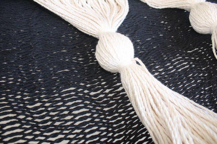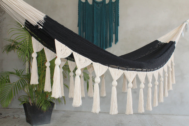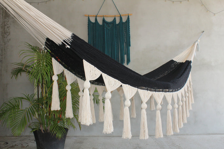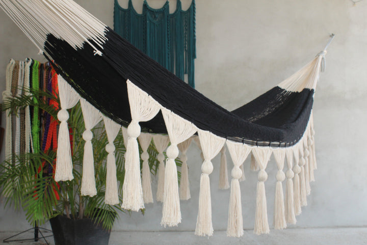 Hamaca De Algodon Artesanal Con Esferas Natural Con Negro