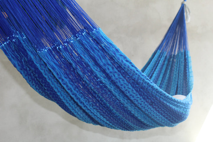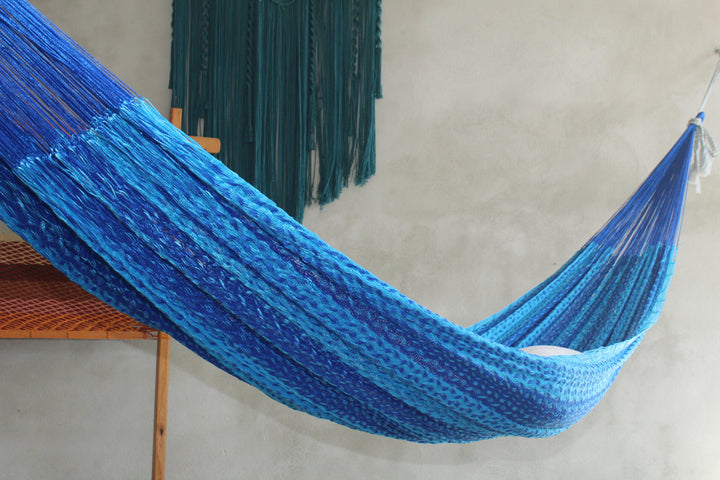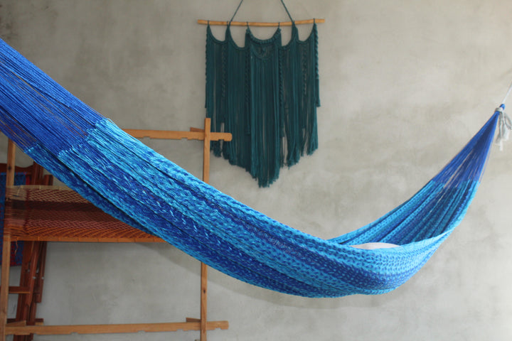 Hamaca Yucateca de Nylon Urdida a Mano, es una creación de nuestros artesanos mayas urdida de forma artesanal